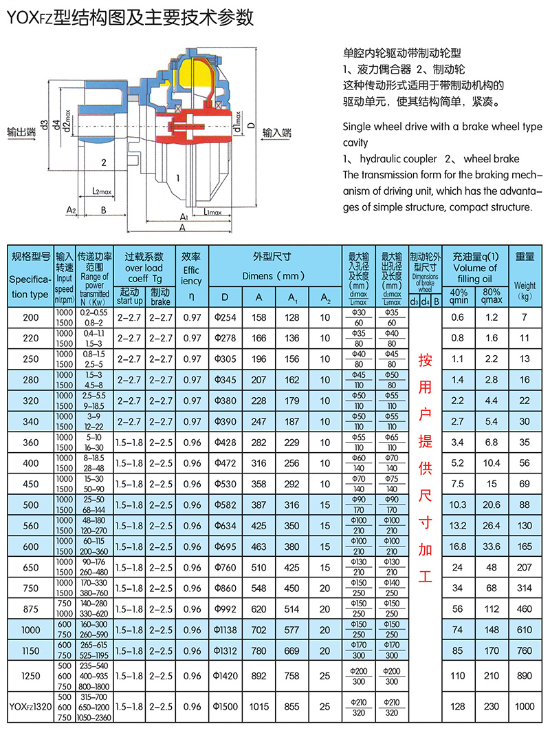 限矩型液力偶合器是一種動力式液力傳動元件,它具有過載保護作用,能隔離扭振和沖擊,在多臺電動機傳動鏈中均衡各電動機的負荷,并減小電網的沖擊電流。在礦山機械、化學工業、治金工業、食品、建筑、交通等部分得到了廣泛應用。 限矩型液力偶合器具有以下特點:效率高,結構簡單,能夠帶動負載平穩起動,改善起動性能,提高起動能力。 具有過載保護作用。能隔離扭振和沖擊。在多臺電動機傳動鏈中均衡各電動機的負荷。并減小電網的沖擊電流。